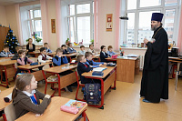 21 декабря в четвертом классе домодедовской школы № 4 состоялся открытый урок. Ответственный за социальное служение и благотворительность в Домодедовском благочинии священник Александр Казаченко рассказал ученикам о празднике Рождества Христова, о святителе Николае Чудотворце и преподобном Серафиме Саровском.