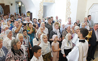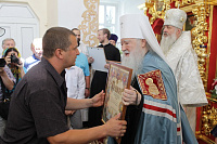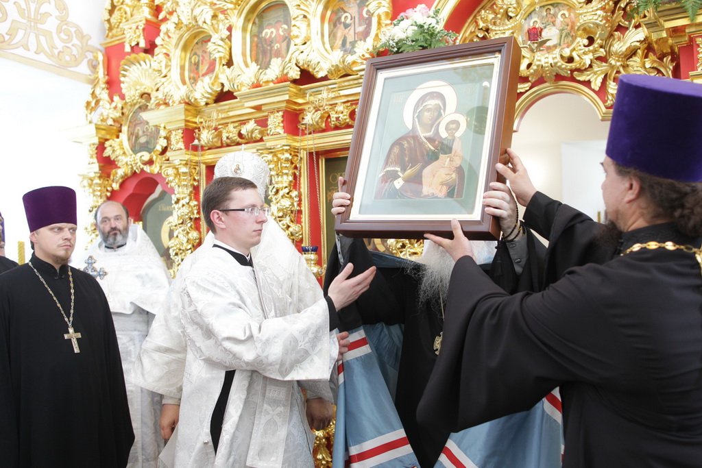 Сердечно благодарю людей, которые принимали участие в восстановлении нашего храма, за их любовь, труд, и, прежде всего, за их молитву. Сегодня Господь всех нас собрал: духовенство, людей, нашего архипастыря — чтобы мы вместе помолились и поставили точку в деле восстановления этой святыни, которая должна прославлять имя Божие. Спаси Вас Господь за Вашу молитву, за Вашу любовь, дорогой Владыка. Нам хотелось бы передать Вам в дар копию с нашего храмового образа Смоленской Пресвятой Богородицы».