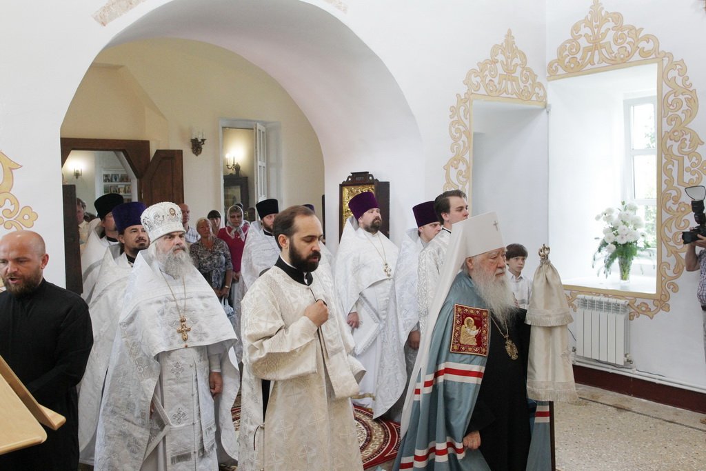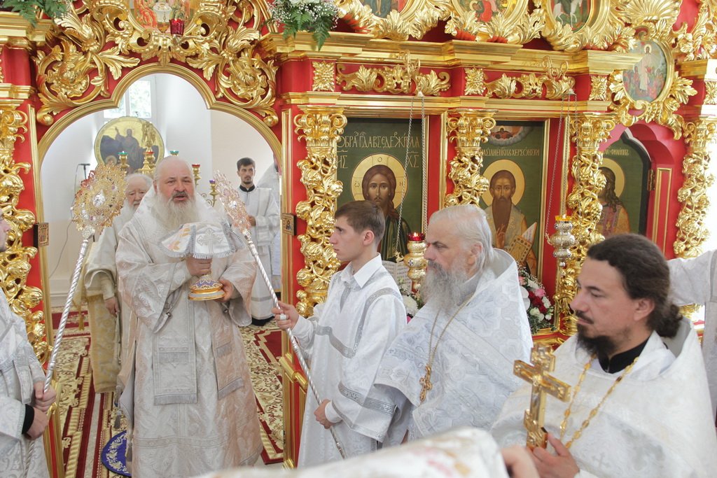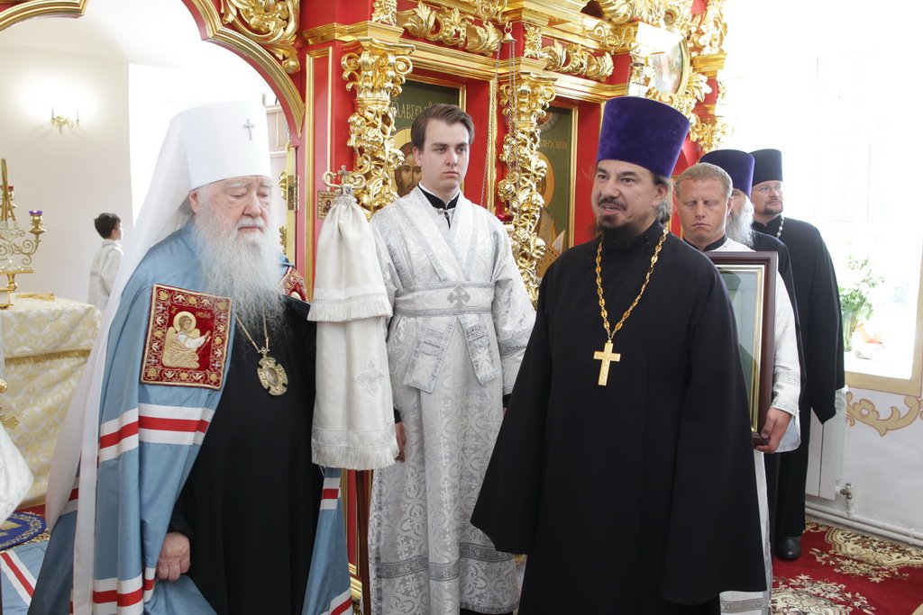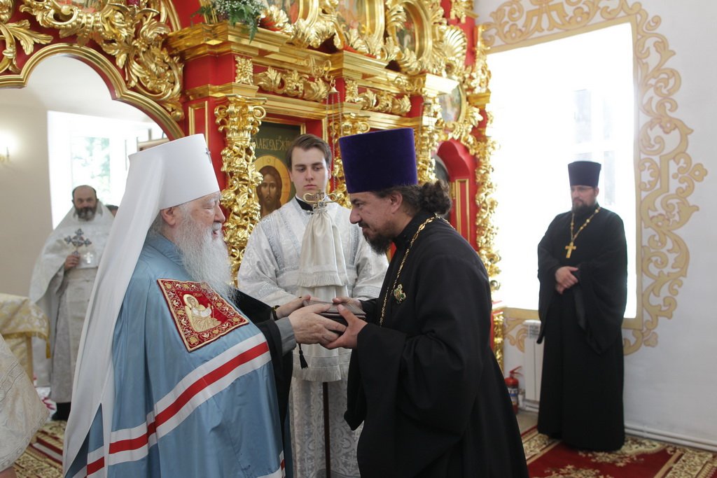 «Ваше Преосвященство, дорогой отец Владимир, всечестные отцы благочинные, почетные гости, прихожане, дорогие и возлюбленные братья и сестры! С глубоким чувством радости и умиления я посещаю сегодня этот святой храм. За последние дни я освятил несколько таких древних, некогда поруганных и разрушенных храмов, но восстановленных благодаря жертвам благотворителей и наших прихожан. И сегодня я опять радуюсь, что Господь вновь и вновь дает мне видеть силу веры людей, которые, несмотря на то что целое поколение в прошлом веке было отторгнуто от веры, не отошли от Христа и хранили в своем сердце веру в Бога и этой верой жили. Конечно, прискорбно слышать о том, что в 1938 году после закрытия храма он использовался не по назначению, а затем вовсе был заброшен и обречен не только на поругание, но на полное разрушение. Но милость Божия и предстательство Царицы Небесной сохранили этот храм. Я благодарен отцу Иоанну Монаршеку, который предпринимал усилия, чтобы вернуть храм Церкви, чтобы зарегистрировать здесь православную общину. Знаю, в каких условиях молились люди в этом храме, с какой горячей, дерзновенной верой, и радуюсь, что они снова обрели этот храм для молитвы. Отец Иоанн