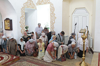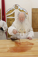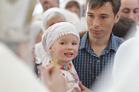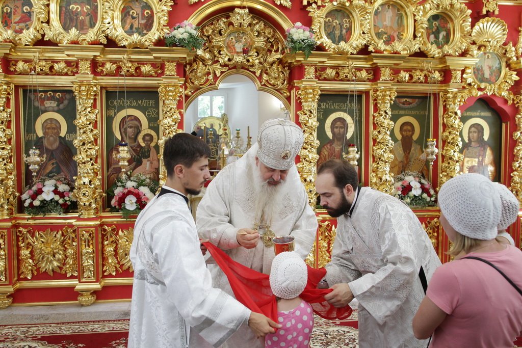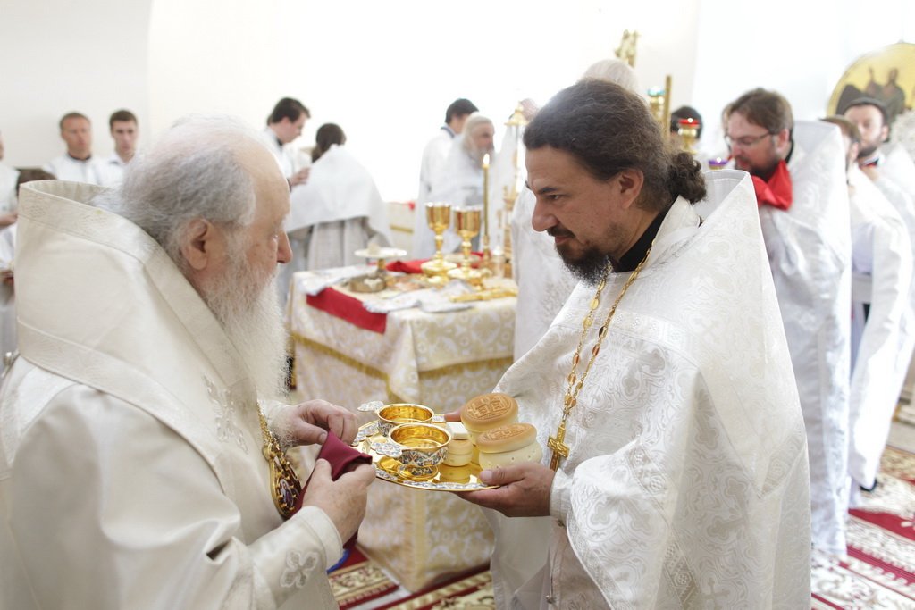 Я поздравляю вас с великим освящением храма, причастников и причастниц — с принятием Святых Христовых Таин, и прошу отца диакона возгласить многолетие всем, „зде предстоящим и молящимся, благотворителям, благоукрасителям и жертвователям святаго храма сего“.