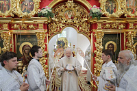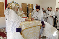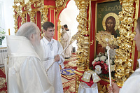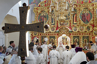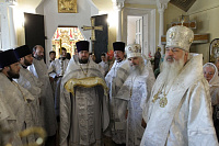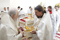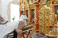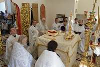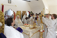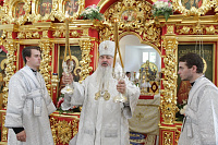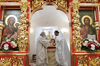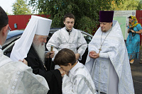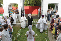 7 августа митрополит Ювеналий совершил освящение Смоленского храма поселка Софрино Пушкинского района и возглавил Божественную литургию в новоосвященном храме.