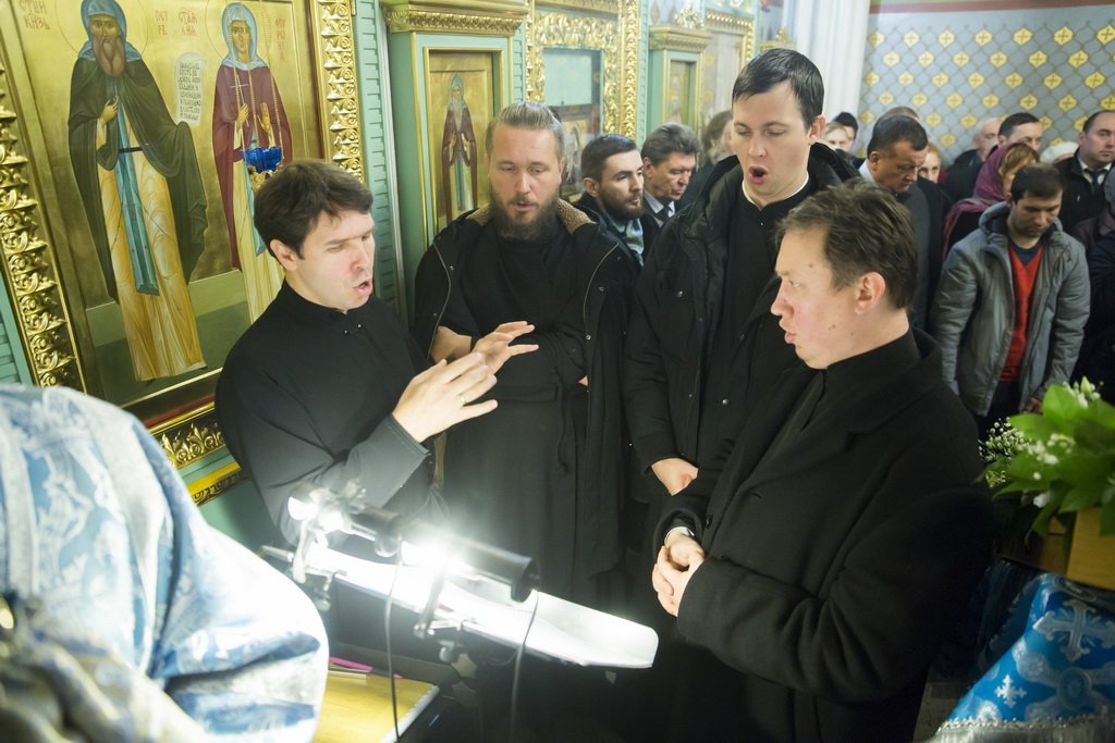 За Литургией Владыке сослужили благочинный церквей Щелковского округа протоиерей Андрей Ковальчук, настоятель Николо-Берлюковской пустыни игумен Евмений (Лагутин), настоятель Вознесенской Давидовой пустыни игумен Сергий (Куксов), настоятель храма в честь иконы Божией Матери «Спорительница хлебов» священник Александр Мороков. Богослужебные песнопения исполнял хор Вознесенской Давидовой пустыни.
