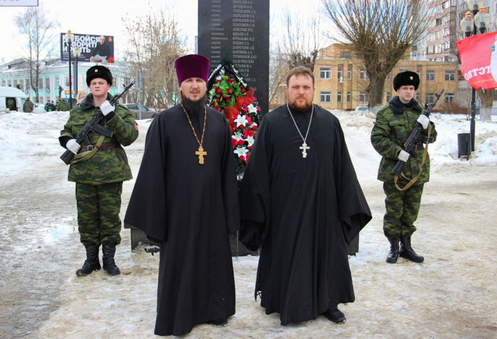 15 февраля у памятника погибшим в локальных войнах и вооруженных конфликтах в г. Орехово-Зуево состоялся памятный митинг. На мероприятии присутствовали клирик храма Новомучеников и исповедников Орехово-Зуевских г. Орехово-Зуево священник Петр Туря и клирик Иоанно-Богословского храма г. Ликино-Дулево священник Антоний Готман.