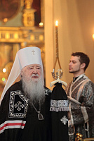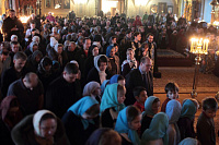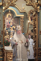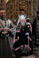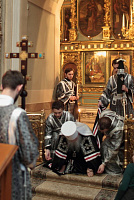 Вечером того же дня Владыка митрополит совершил вечерню, а затем чин прощения. По окончании вечерни Владыка митрополит обратился к духовенству и собравшимся богомольцам с напутственным словом в преддверии Великого поста: «Возлюбленные братья и сестры! Господь дает нам время на покаяние и духовное возрождение. Мы вступаем в спасительный период сорокадневного Великого поста. Святое Евангелие повествует нам о том, что Господь наш Иисус Христос после Крещения на Иордане удалился в пустыню и там сорок дней пребывал в посте и молитве (см.: Мф. 4:1–2). И нам предстоит этот подвиг. Мы вспоминаем также, что в конце этого поста ко Христу приступил диавол, который предлагал Ему разные испытания, искушения, которые Господь отверг (см.: Мф. 4: 3–11). Не только в Великом посту, но и в повседневной жизни на нашем христианском поприще встречаются подобные испытания, которые Церковь называет искушениями: искушение тщеславием, сребролюбием, честолюбием, властью, — всего и не перечислишь. Каждый из нас знает эти грехи, знает эти искушения, которые сходу трудно отвергнуть, как это сделал в пустыне Спаситель мира. Мы возлюбили грех, свыкнулись с ним и не желаем с ним расставаться. Грех стал нормой нашей повседневной жизни, и мы, порой, будучи христианами, монашествующими, не отличаемся от тех людей, которые не приняли Святого Крещения. Чтобы очистить эту скверну души, чтобы духовно возродиться, чтобы осознать пагубность греха и обратить взор свой к Богу, нужно вспомнить обеты, данные нами при Святом Крещении. Они призывают нас к покаянию, к доброделанию, к изменению нашей греховной жизни. Как, братья и сестры, легко сказать, и как это трудно дается! Бывает так, как в притче о блудном сыне (см.: Лк. 15:11–32): мы вспоминаем о Боге, когда духовно и физически обнищаем, когда нам невыносимо трудно становится в этой жизни, и лишь тогда мы свой взор обращаем к Богу. Церковь учит нас, что объятия Отца нашего небесного открыты для кающегося человека. Но нам нужно научиться каяться. Святая Церковь в прошедшие недели напоминала нам о том, как нужно каяться. А мы и