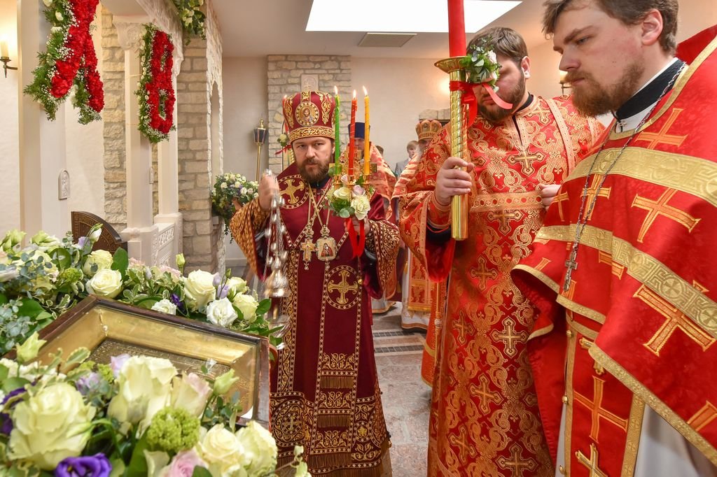 20 апреля, по благословению митрополита Ювеналия, митрополит Волоколамский Иларион совершил освящение храма блаженной Матроны Московской при медицинском центре «Верба Майер» и возглавил Божественную литургию в новоосвященном храме. Владыке митрополиту в этот день сослужили епископ Серпуховской Роман, настоятель храма блаженной Матроны Московской, благочинный церквей Пушкинского округа протоиерей Иоанн Монаршек (мл.), благочинный церквей Ивантеевского округа протоиерей Иоанн Монаршек, его помощник священник Сергий Монаршек, секретарь митрополита Илариона священник Александр Карзан. За богослужением молились член совета директоров австрийского центра здоровья «Верба Майер» А.А. Рыбаков и управляющий австрийского центра здоровья «Верба Майер» С.Г. Карзан. Песнопения Божественной литургии исполнял хор Троицкого храма г. Пушкино. По окончании Литургии был совершен крестный ход, после которого митрополит Иларион обратился к присутствующим с архипастырским словом. В завершении праздника епископ Роман наградил особо потрудившихся в строительстве и благоукрашении храма. Медалью Московской епархии «За жертвенные труды» I степени был награжден А.А. Рыбаков, благословенных грамот митрополита Ювеналия были удостоены С.Г. Карзан, О.М. Рыбакова, Д.Н. Хомяков.