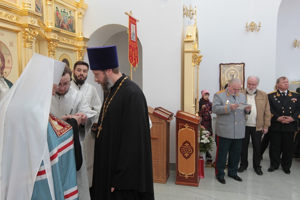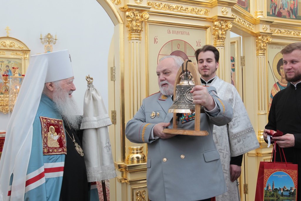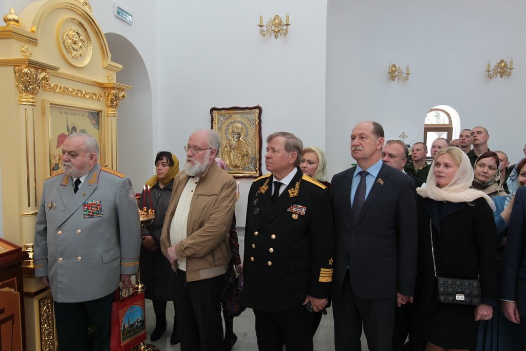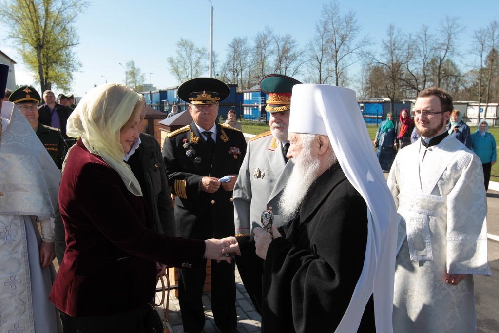 У ворот храма Владыку встречали: референт заместителя министра обороны России, генерал-майор А. В. Кирилин, посол по особым поручениям В. Е. Чуров, депутат Московской областной думы А. Н. Баранов, глава городского поселения Калининец М. В. Трубкин, глава городского поселения Селятино Е. Н. Голубев, командир 100-го отдельного полка обеспечения полковник С. И. Сафонов.