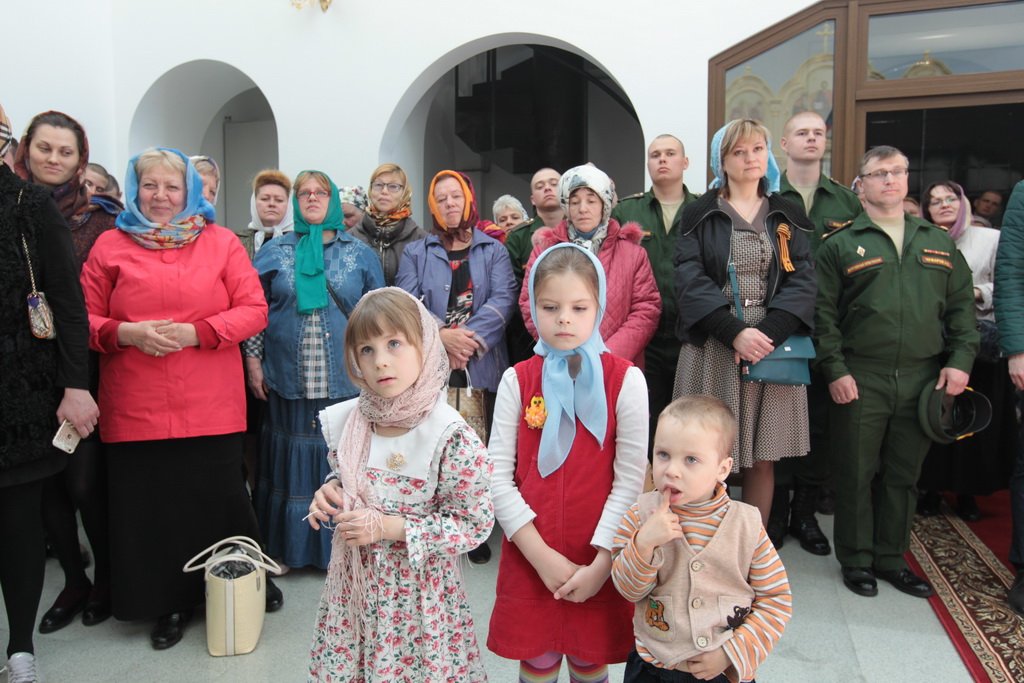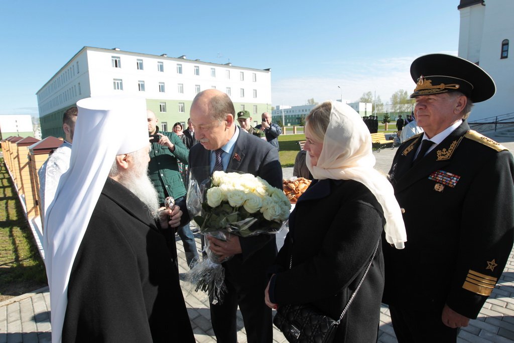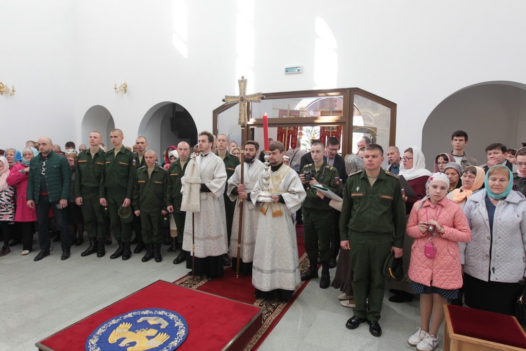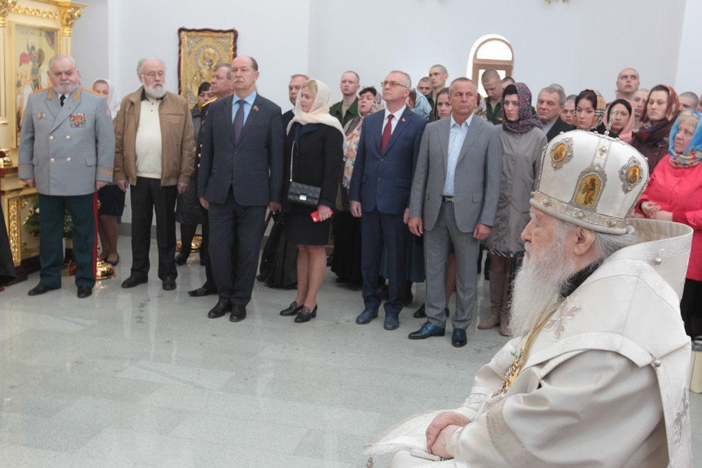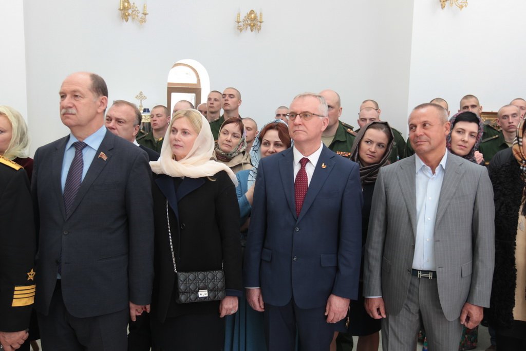 У ворот храма Владыку встречали: референт заместителя министра обороны России, генерал-майор А. В. Кирилин, посол по особым поручениям В. Е. Чуров, депутат Московской областной думы А. Н. Баранов, глава городского поселения Калининец М. В. Трубкин, глава городского поселения Селятино Е. Н. Голубев, командир 100-го отдельного полка обеспечения полковник С. И. Сафонов.