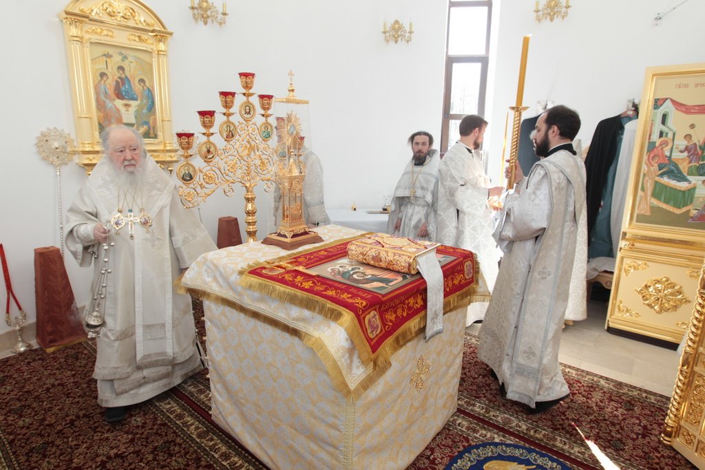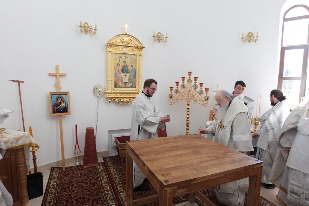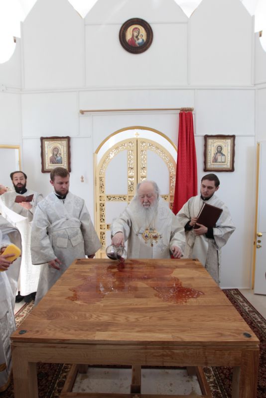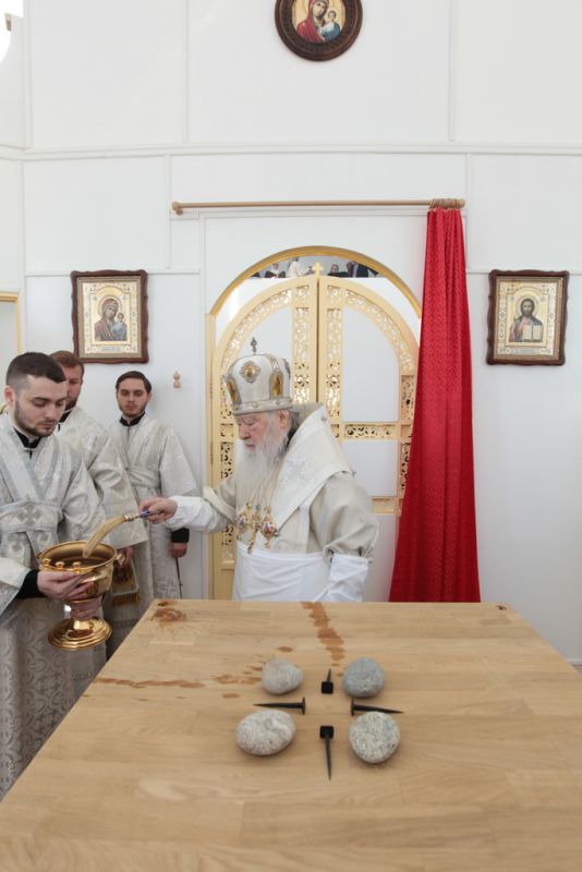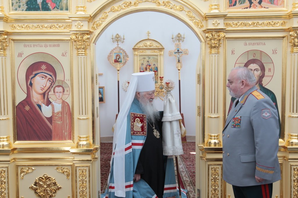 6 мая, в день памяти великомученика Георгия Победоносца, митрополит Ювеналий совершил великое освящение Георгиевского храма на территории 100-го отдельного полка обеспечения в поселке Калининец Наро-Фоминского района и возглавил Божествен ную литургию в новоосвященном храме.