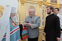 Митрополит Ювеналий преподнес Александру Валентиновичу пасхальное яйцо и календарь «От Пасхи до Пасхи».