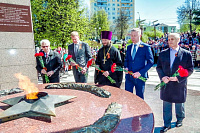 По завершении богослужения духовенство, почетные гости и прихожане храма направились на Аллею славы, расположенную рядом с Георгиевским храмом, где возгласили «Вечную память» павшим воинам, почтили их минутой молчания и возложили цветы к мемориалу. Затем в трапезной храма состоялся прием главы Ленинского района по случаю празднования дня памяти великомученика Георгия Победоносца и 72-ой годовщины победы в Великой Отечественной войне, на котором присутствовали представители администрации, духовенство, ветераны и прихожане. Во время трапезы был представлен концерт, подготовленный учащимися воскресной школы, детской школой искусств и хором Георгиевского храма. Каждый ветеран получил подарок главы района.