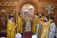 Его Высокопреосвященству сослужили благочинный Домодедовского церковного округа протоиерей Владислав Гусар, настоятель храма священник Александр Королев, духовенство благочиния.
