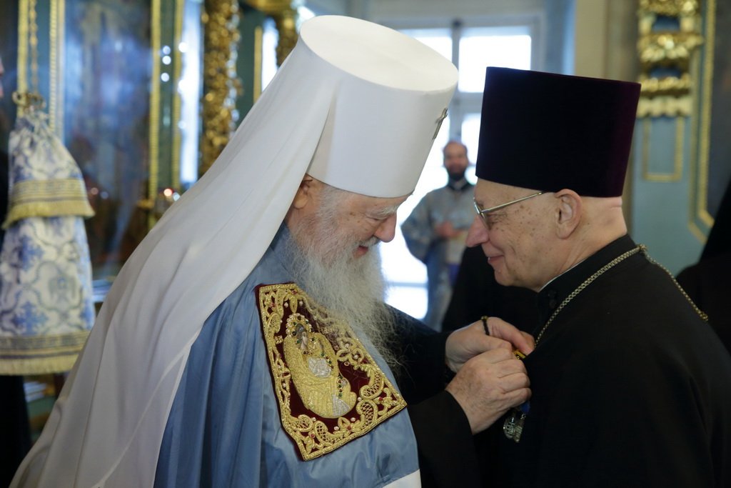 25 сентября в Успенском храме Новодевичьего монастыря состоялось награждение клириков Московской епархии наградами, которых они были удостоены митрополитом Ювеналием за усердное служение в связи с юбилейными датами, которые они отмечают в этом году.