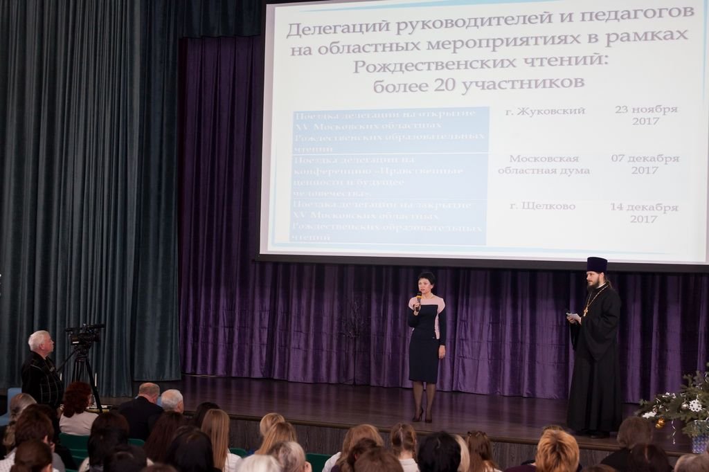 13 декабря в средней школе № 9 Домодедово состоялось закрытие XV районных Рождественских образовательных чтений. В торжественном мероприятии приняли участие председатель совета депутатов г. о. Домодедово Л. П. Ковалевский, начальник районного управления образования Е. В. Болмазова, депутат совета депутатов г. о Домодедово, ректор Российского государственного гуманитарного университета Е. Н. Сафонов, благочинный Домодедовского церковного округа протоиерей Владислав Гусар, духовенство благочиния, директора школ, заведующие детских садов, педагоги, родители и учащиеся Домодедовских школ. После приветственных слов и открытого урока, который провели учащиеся гимназии №5, участники форума посетили различные секции и круглые столы, где продолжилось обсуждение тем, связанных с нравственной проблематикой. После подведения итогов работы секций прошла церемония награждения педагогов и священнослужителей, активно потрудившихся в ходе проведения XV районных Рождественских образовательных чтений.