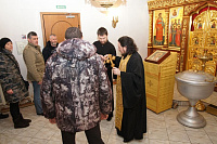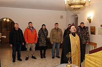 2 января в Георгиевском храме города Дедовска состоялась встреча благочинного церквей Истринского округа протоиерея Димитрия Подорванова с членами истринского патриотического объединения «Рубеж». Сотрудники «Рубежа» собрали гуманитарную помощь на Донбасс, перед отправкой которой состоялся молебен. По завершении общей молитвы протоиерей Димитрий передал подарки для детей Донбасса.