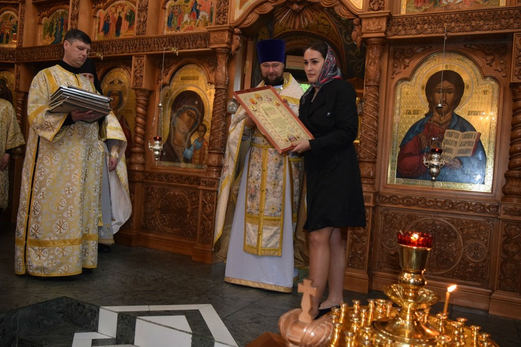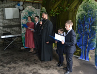20 мая в Успенском храме г. Видное состоялось празднование 15-летия православного образовательного клуба детского творчества «Асида». Воспитанники клуба, их родители, педагоги и прихожане собрались в этот день в храме, чтобы вместе помолиться за Божественной литургией, которую возглавил благочинный Видновского церковного округа священник Димитрий Березин. Ему сослужили настоятель храма иеромонах Софроний (Горохольский) и клирики храма. За богослужением пел приходской молодежный хор «Харадрион». После Литургии был отслужен благодарственный молебен Спасителю, по окончании которого священник Димитрий Березин вручил епархиальные и благочиннические награды. Благодарственных грамот митрополита Ювеналия удостоены настоятель Успенского храма иеромонах Софроний (Горохольский), клирики храма священник Димитрий Федоров и диакон Павел Чекалин; благословенной грамоты – клирик храма священник Михаил Попов. Грамотами Видновского благочиния были отмечены регент храма И.А. Орденов и преподаватели клуба. Всем выпускникам и воспитанникам были вручены юбилейные грамоты. Праздник продолжился на территории храма, где была организована трапеза и концерт, подготовленный воспитанниками и их родителями.