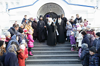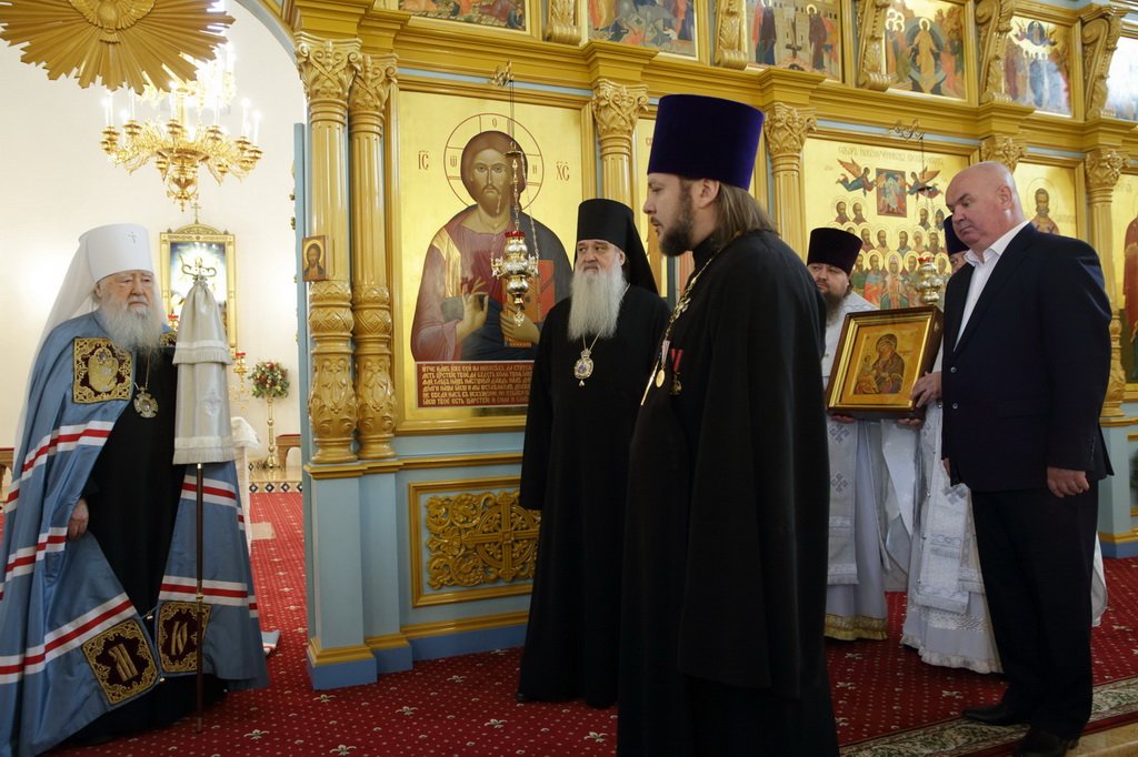 По окончании Литургии с приветственным словом к митрополиту Ювеналию обратился протоиерей Сергий Якимов: