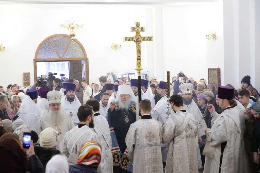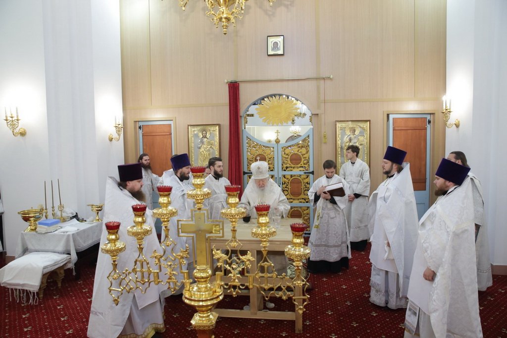 Его Высокопреосвященству сослужили викарии Московской епархии епископы Серпуховский Роман и Луховицкий Петр, секретарь Московского епархиального управления протоиерей Михаил Егоров, благочинные церковных округов Московской епархии: Воскресенского – протоиерей Сергий Якимов, Орехово-Зуевского – протоиерей Андрей Коробков, Солнечногорского – протоиерей Антоний Тирков, Ступинского – протоиерей Евгений Ряполов, Егорьевского – протоиерей Сергий Кожевников, Чеховского – священник Константин Александров, Бронницкого – священник Сергий Себелев, клирик Богородице-Смоленского Новодевичьего монастыря протоиерей Сергий Гуданов, клирики Воскресенского благочиния.