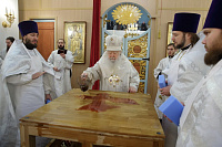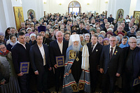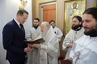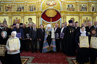 Во внимание к трудам по строительству храма Владыка Ювеналий вручил патриаршие и епархиальные награды духовенству, труженикам и благотворителям храма.