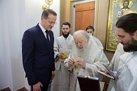 С приветственным словом к митрополиту Ювеналию обратился глава Воскресенского района О. В. Сухарь: