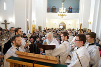 За богослужением Его Высокопреосвященство рукоположил чтеца Евгения Шевко – во диакона, а диакона Владимира Ткача во священника.