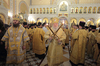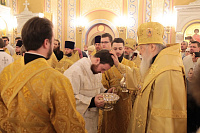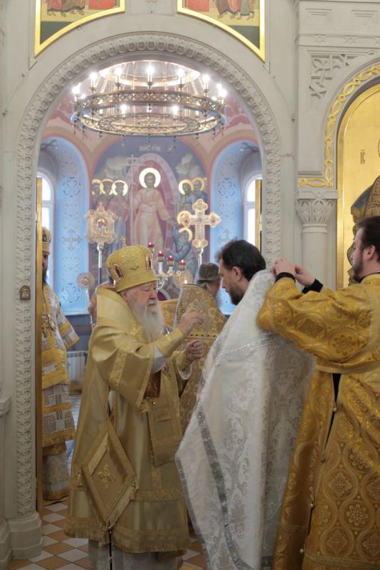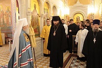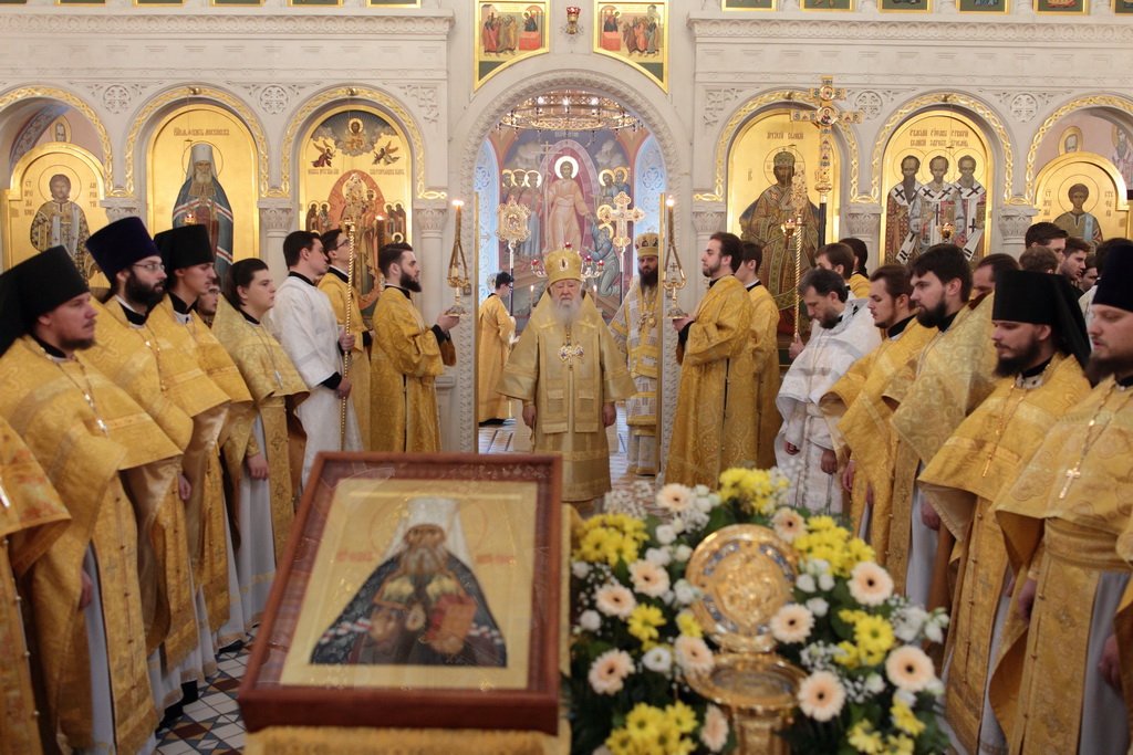 По окончании Литургии перед иконой и мощами святителя Филарета было совершено славление.