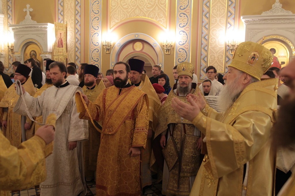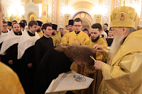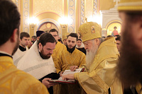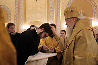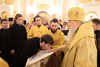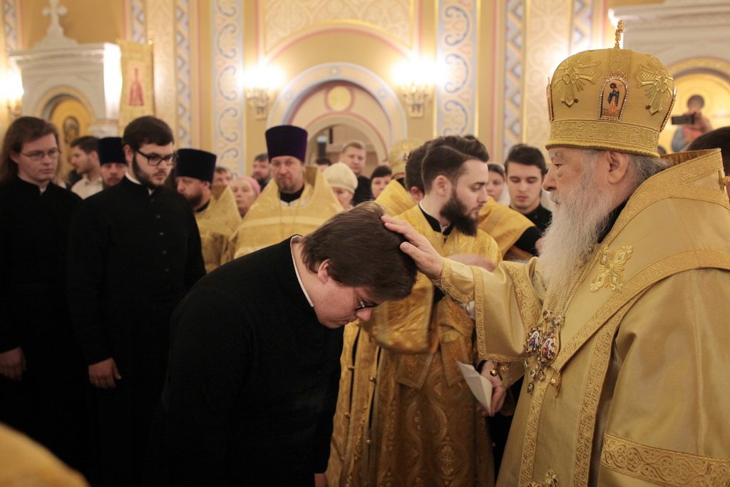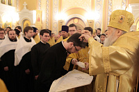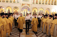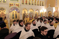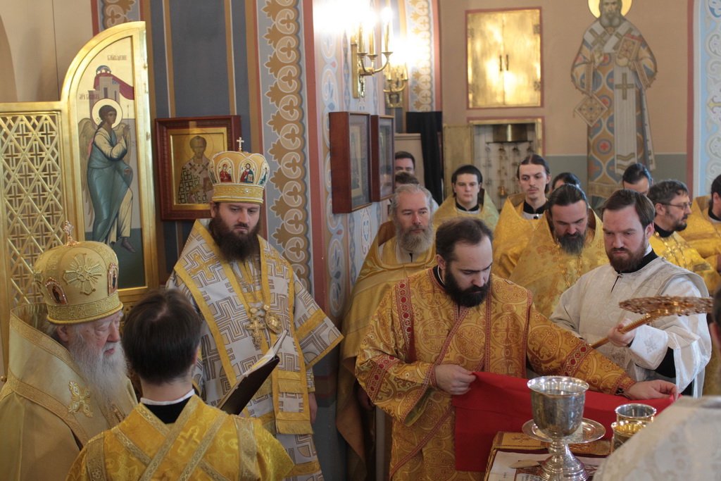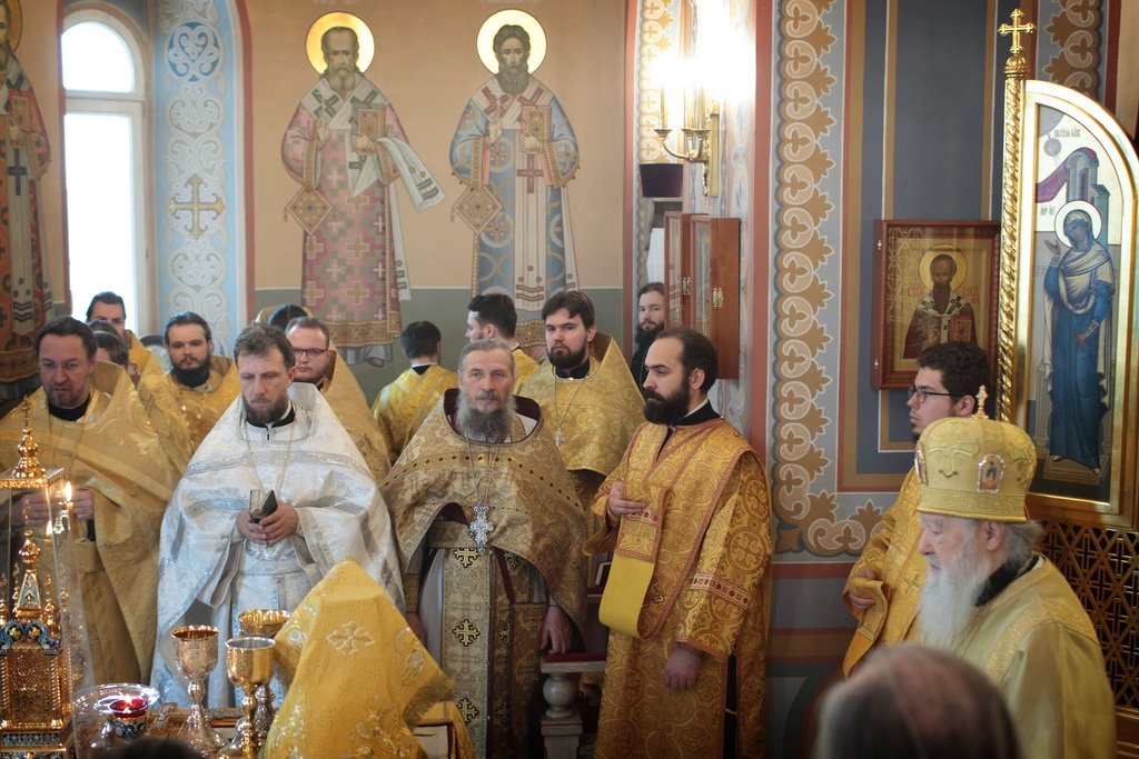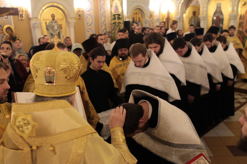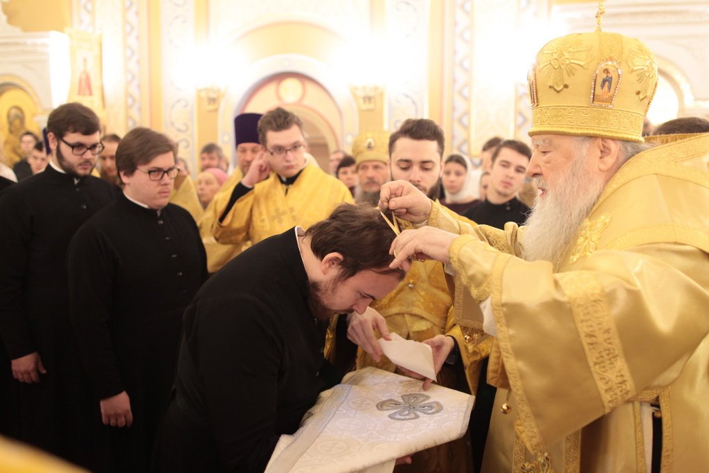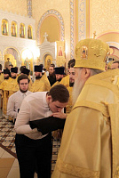 За богослужением Его Высокопреосвященство рукоположил диакона Сергия Синенко во пресвитера и студента 3 курса семинарии Алексия Гришанова во диакона.