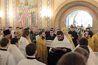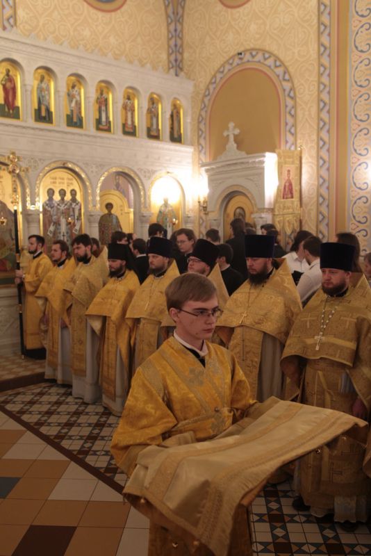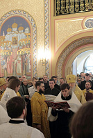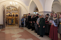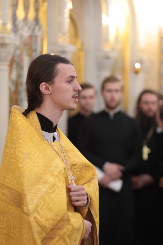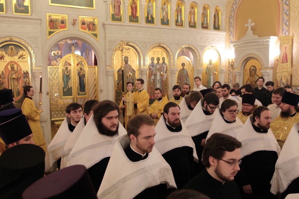 Богослужебные песнопения исполнял хор семинарии под управлением регента Хора духовенства Московской епархии священника Сергия Голева и диакона Николая Глухова.