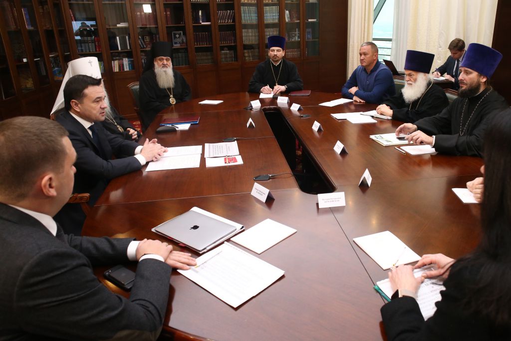 В этот же день в здании Правительства Московской области под председательством губернатора Подмосковья А.Ю. Воробьева, сопредседателя Благотворительного фонда Московской епархии по восстановлению порушенных святынь, состоялось заседание Попечительского совета Фонда. В заседании приняли участие сопредседатель Попечительского совета митрополит Ювеналий, члены Попечительского совета: вице-губернатор Московской области — руководитель Администрации Губернатора Московской области М. М. Кузнецов, епископ Серпуховской Роман, председатель Управляющего совета Фонда протоиерей Михаил Егоров, председатель Епархиального отдела по благотворительности и социальному служению протоиерей Димитрий Оловянников, а также директор Фонда протоиерей Константин Островский, начальник Главного управления культурного наследия Московской области В.В. Березовская и секретарь Попечительского совета и член Управляющего совета Фонда священник Василий Лосев.