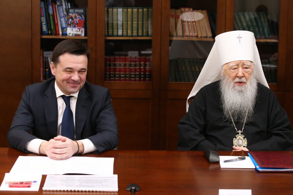 Сегодня проходит наша первая официальная встреча после всенародного избрания Вас на пост губернатора Московской области. От себя лично, архиереев, священников и всей нашей паствы я хотел бы приветствовать Вас и пожелать успехов во всех Ваших делах. Мы встречаемся сразу после дня памяти апостола Андрея Первозванного, вчера у Вас был день тезоименитства, и сегодня я бы хотел от своего лица и от всей нашей многомиллионной православной паствы поздравить Вас с прошедшим днем Ангела.