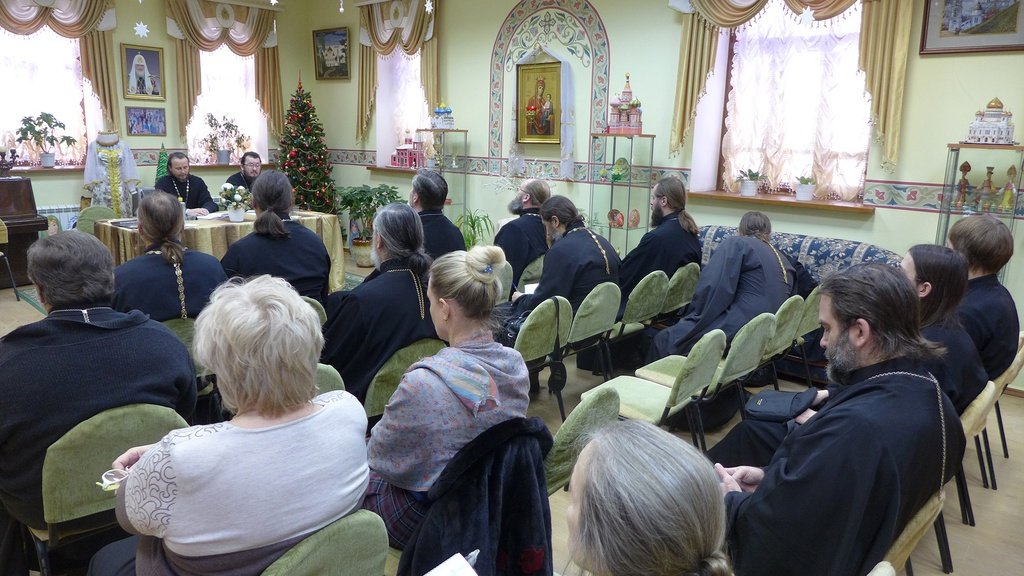 21 декабря в центре детского творчества «Русский дом» г. Дмитрова прошло собрание духовенства Дмитровского благочиния. На собрании была доведена до духовенства информация, поступившая из Епархиального управления. Благочинный Дмитровского округа протоиерей Афанасий Чорногуз рассказал о ходе восстановления порушенных святынь и планах на новый год. Главный бухгалтер благочиния Л.В. Постнова напомнила о соблюдении финансовой дисциплины на приходах, о деятельности попечительского фонда благочиния и о восстановлении Христорождественского храма села Тимоново силами благочиния. Затем выступили ответственные за различные направления деятельности в благочинии.