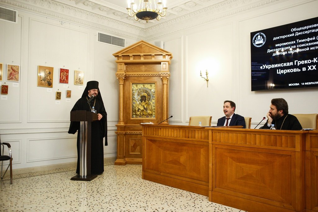 14 февраля состоялись защиты докторских диссертаций двух преподавателей Коломенской духовной семинарии: иеромонаха Тимофея (Ясеницкого), проректора по научной работе КДС, преподавателя Истории Русской Православной Церкви и Гомилетики, клирика Трехсвятительского храма КДС, и протоиерея Вадима Суворова, настоятеля Троицкого храма поселка Удельная Раменского района, преподавателя Истории западных исповеданий и Сравнительного богословия. Защита проходила в актовом зале Общецерковной аспирантуры и докторантуры на заседании Общецерковного докторского диссертационного совета под председательством митрополита Волоколамского Илариона.