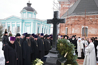 За богослужением молились глава Коломенского городского округа Д. Ю. Лебедев, игумения Свято-Троицкого Ново-Голутвина монастыря Ксения (Зайцева), игумения Успенского Брусенского монастыря Екатерина (Варфоломеева), родственники почившего, паломники и прихожане обители.