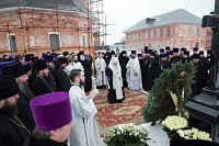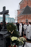 Перед началом богослужения Владыка митрополит возложил венок к могиле архиепископа Григория.