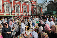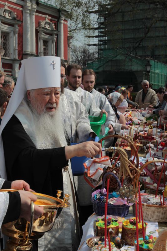 27 апреля, в Великую субботу, митрополит Ювеналий совершил вечерню и Божественную литургию святителя Василия Великого в Успенском храме Новодевичьего монастыря.