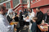 После сугубой ектении Владыка митрополит вознес молитву о мире на Святой Земле, которая традиционно совершается во всех храмах Русской Православной Церкви в Великую субботу, и молитву о мире на Украине.