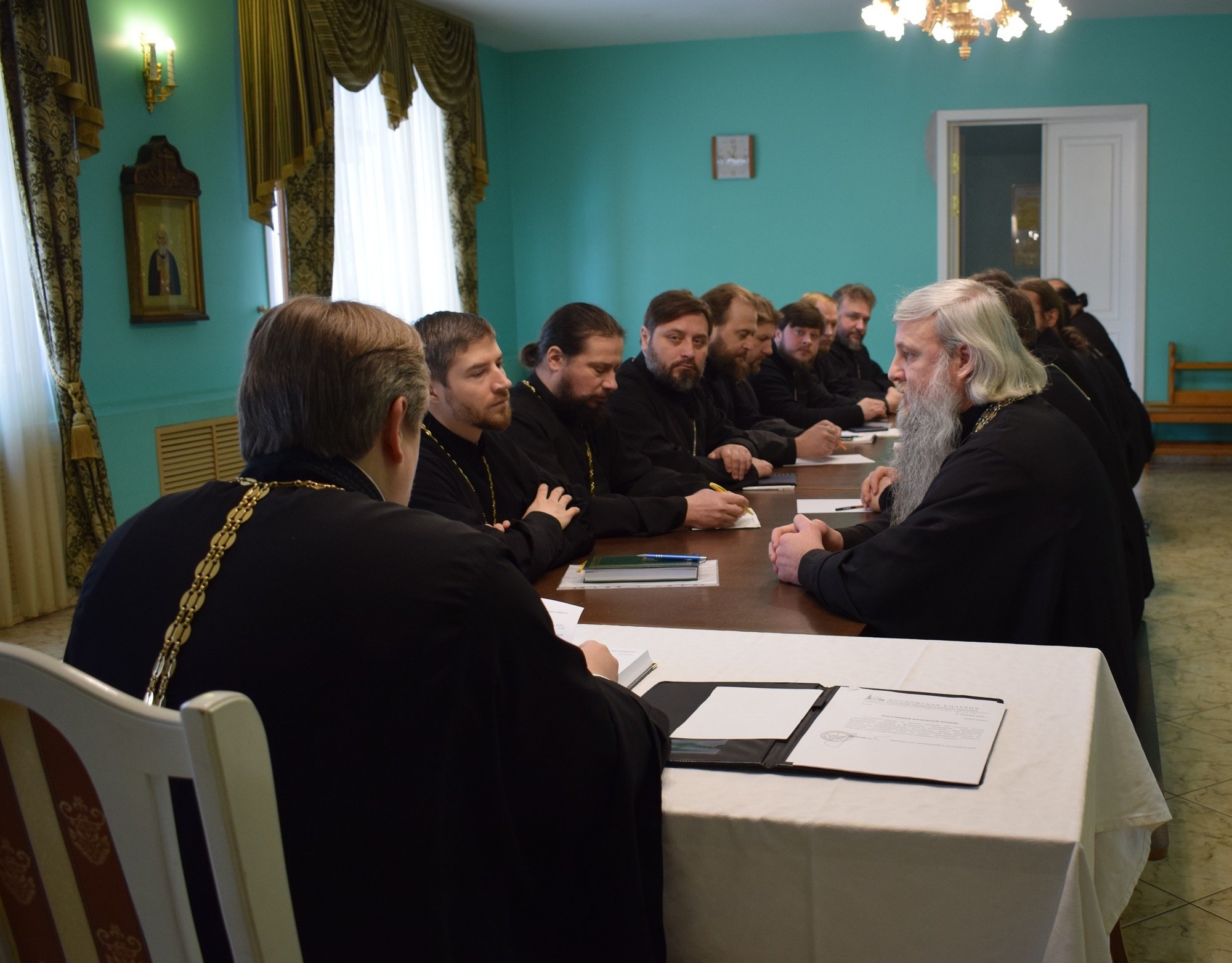 18 февраля в крестильном Серафимовском храме, приписном к Александро-Невскому собору г. Егорьевска, состоялось братское совещание духовенства Егорьевского церковного округа. Благочинный протоиерей Сергий Кожевников довел до сведения собравшихся информацию, поступившую из Епархиального управления, после чего состоялось обсуждение проекта документа Межсоборного Присутствия «О благословении православных христиан на исполнение воинского долга». Настоятель Успенского храма села Саввино священник Александр Леонтьев рассказал о ходе восстановления порушенной святыни.
