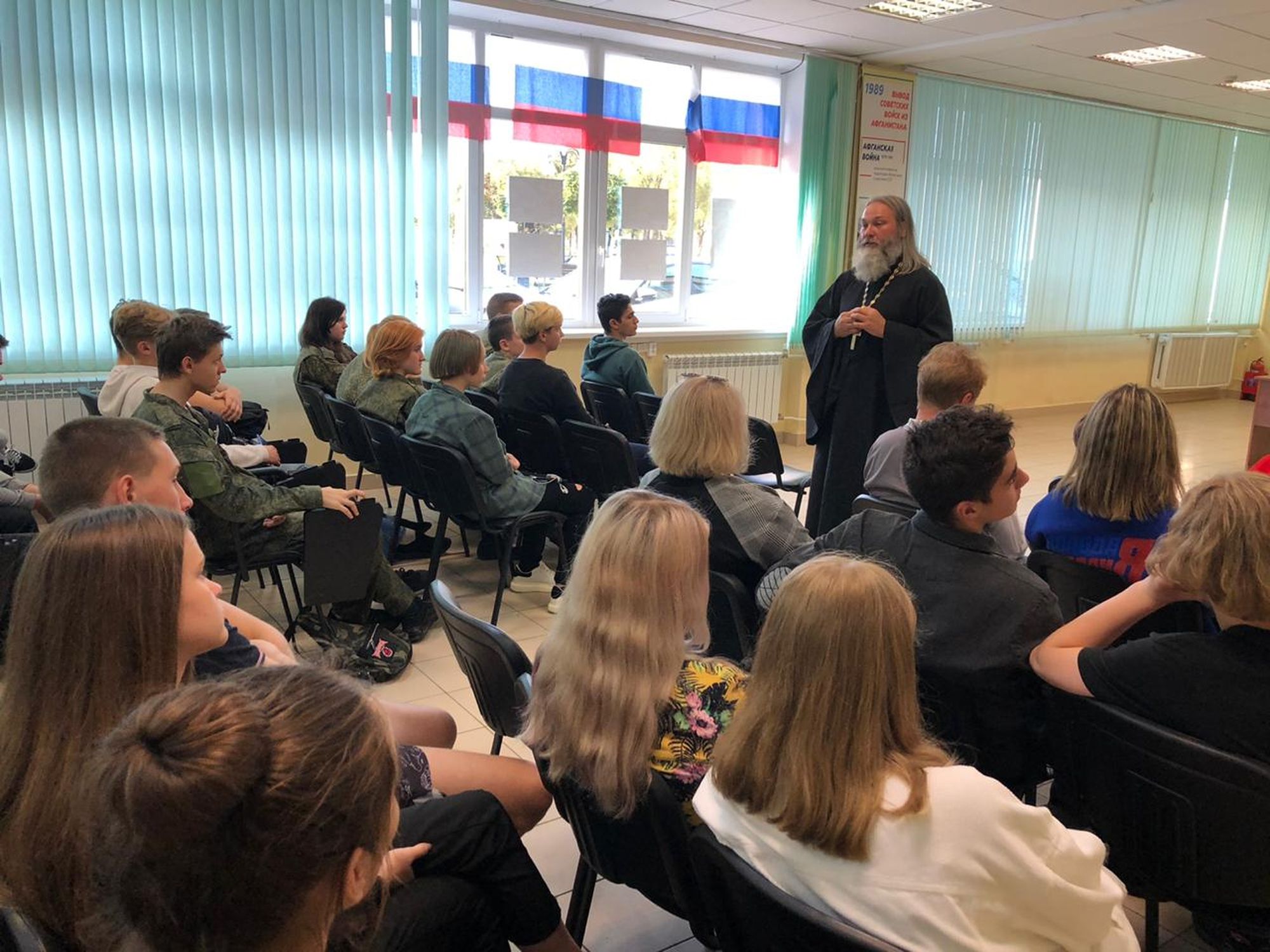 22 октября в молодёжном центре «Патриот» г. Серпухова состоялась встреча со старшеклассниками, посвященная теме «Александр Невский: Запад и Восток, историческая память народа». Настоятель Успенского храма села Старые Кузьменки протоиерей Александр Голубев рассказал о житии святого и восприятии его личности в контексте современной истории.