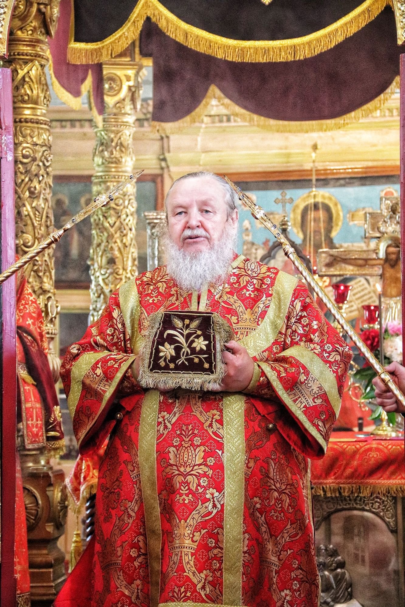 После сугубой ектении Владыка вознес молитву, читаемую во время распространения вредоносного поветрия.