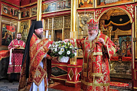 По окончании Литургии с приветственным словом к архипастырю обратился игумен Серафим (Голованов). Батюшка поблагодарил Преосвященного Владыку за архипастырский визит и от лица братии и прихожан монастыря преподнес памятные подарки.
