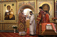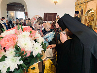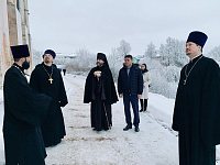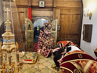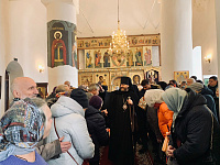 После богослужения Владыка одобрил результаты очередного этапа реставрации памятника Федерального значения Никольского собора и ознакомился с планом дальнейшей реставрации. и преподал архипастырское благословение прихожанам Никольского собора.