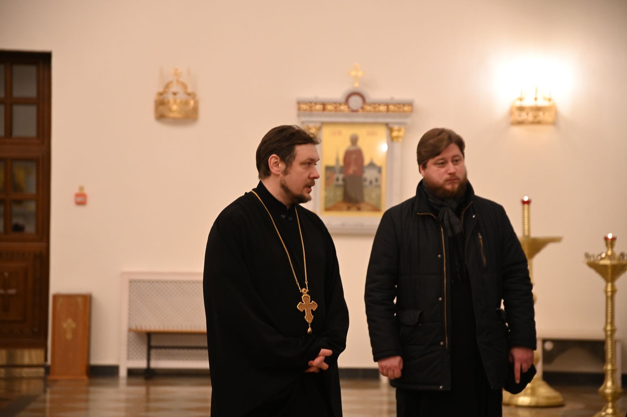 После посещения экспозиции сотрудники УФСИН побывали в храмовом комплексе в честь святого равноапостольного князя Владимира - небесного покровителя войск Росгвардии, который построен в подмосковном городе Балашиха. Встретил гостей настоятель храма протоиерей Максим Беликов. Он рассказал присутствующим о храме и о духовно-просветительской работе с военнослужащими, организовал ознакомительную экскурсию: участники побывали в верхнем храме и в нижнем – в честь Сорока Севастийских мучеников, а также на звоннице.