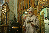 После Евангельского чтения митрополит Павел огласил Рождественское послание Святейшего Патриарха Московского и всея Руси Кирилла.