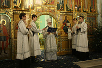 Богослужебные песнопения исполнил соборный хор под управлением Натальи Камышниковой.