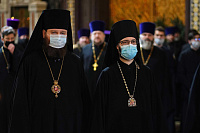 За богослужением молились правящие архиереи епархий Московской митрополии, викарии и благочинные Московской епархии, настоятели и игумении ставропигиальных монастырей, духовенство г. Москвы, члены приходских советов столичных храмов, сотрудники синодальных учреждений, многочисленные верующие.
