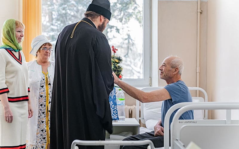 Владыка обошёл все палаты и вручил подарки находящимся на лечении.