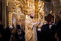 Его Высокопреосвященству сослужили ключарь собора иерей Мариан Колищак и клирики собора. Богослужебные песнопения исполнил архиерейский хор под управлением Александра Веретенникова.