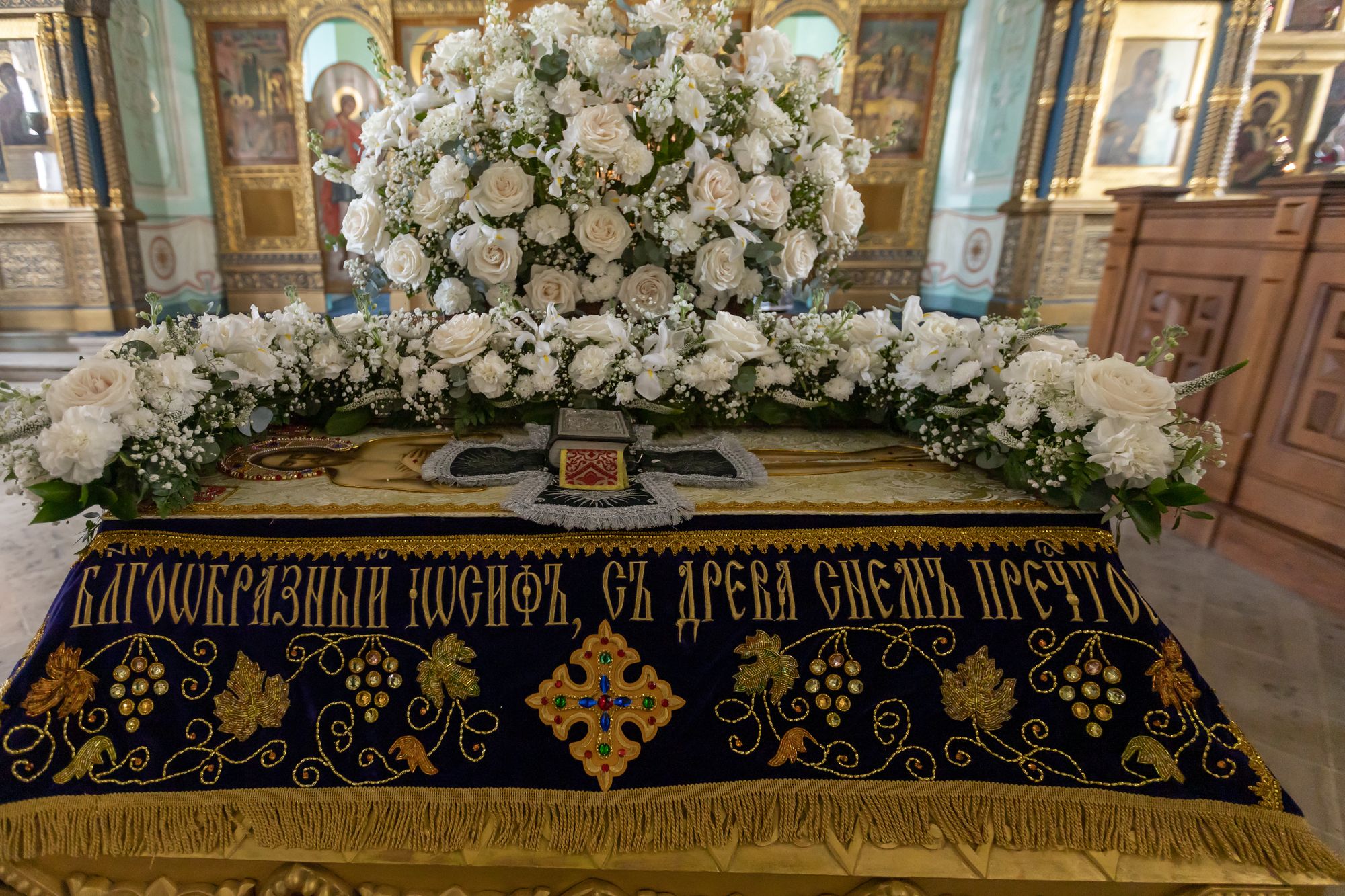 Его Высокопреосвященству сослужили: наместник иеромонах Кирилл (Зинковский) и клирики обители.