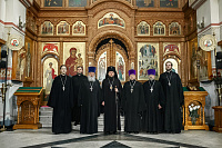 Его Высокопреосвященству сослужили настоятель собора, благочинный Люберецкого церковного округа иерей Вячеслав Новак, настоятель Троицкого храма города Люберцы протоиерей Пётр Иванов и клирики Подольской епархии.