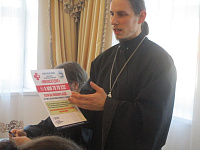 Иерей Аркадий Терехин, ответственный в благочинии за социальное служение и благотворительность, рассказал о действующей в Русской Православной Церкви федеральной линии церковной социальной помощи «Милосердие» и раздал настоятелям для размещения в храмах плакаты с информацией и номером телефона, по которому можно попросить о помощи.