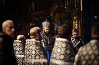 Его Высокопреосвященству сослужили клирики Троицкого собора. Богослужебные песнопения исполнил архиерейский хор под руководством Александра Веретенникова.